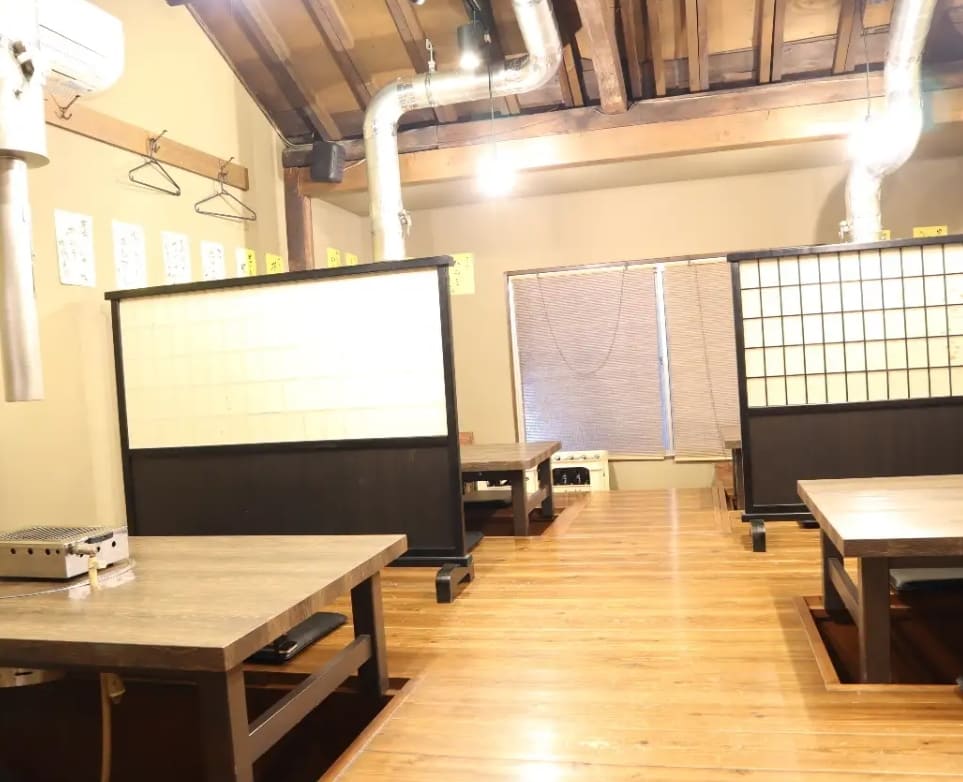 - 奥のテーブル席は仕切りをすると半個室になる